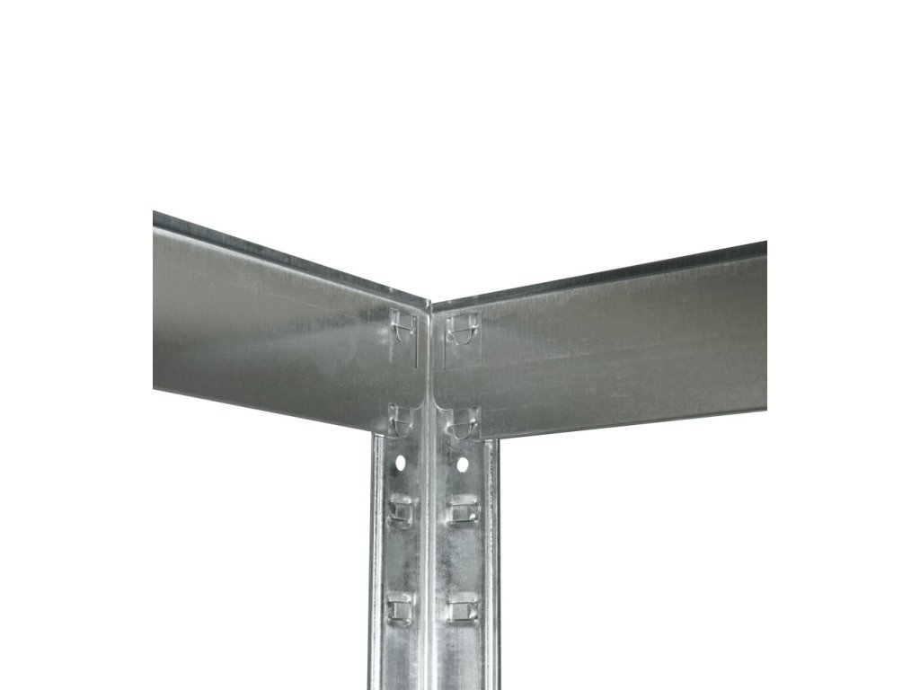 Pozinkovaný regál 150x70x30cm, je ideální pro každou komoru, garáž či spižírnu. Skládá se z pěti polic, jejichž pevnost zvyšují střední podpěry. Zaoblené hrany kovové konstrukce zabraňují poranění při používání regálu.