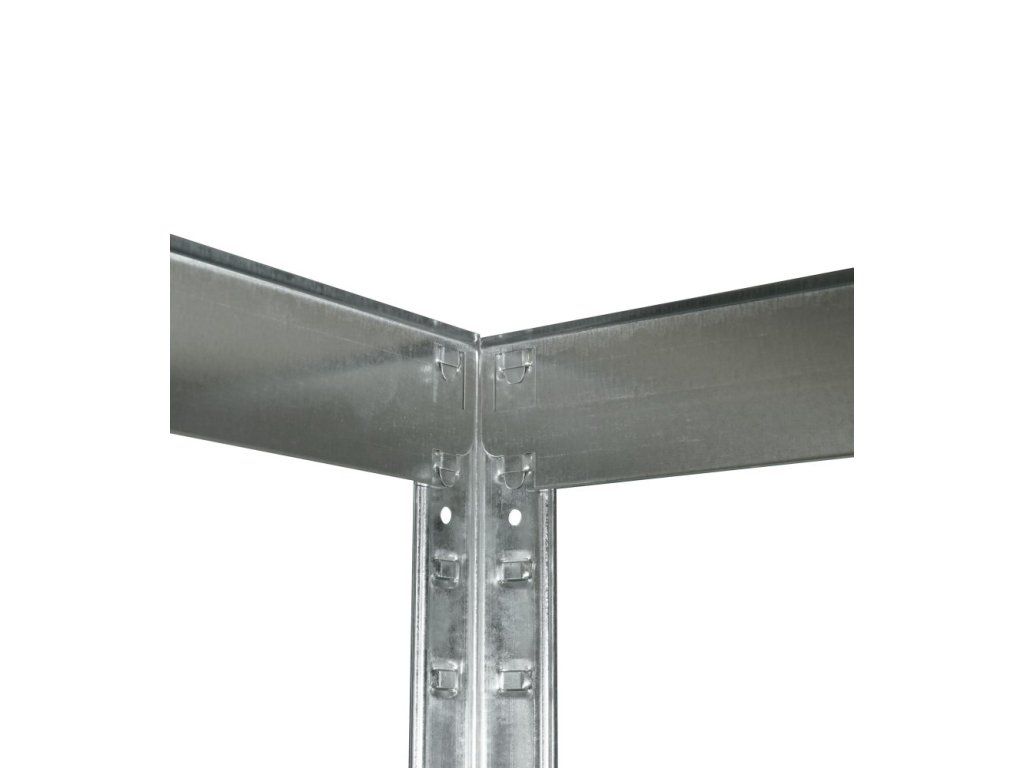 Pozinkovaný regál 150x70x30cm, je ideální pro každou komoru, garáž či spižírnu. Skládá se ze šesti polic, jejichž pevnost zvyšují střední podpěry. Zaoblené hrany kovové konstrukce zabraňují poranění při používání regálu.