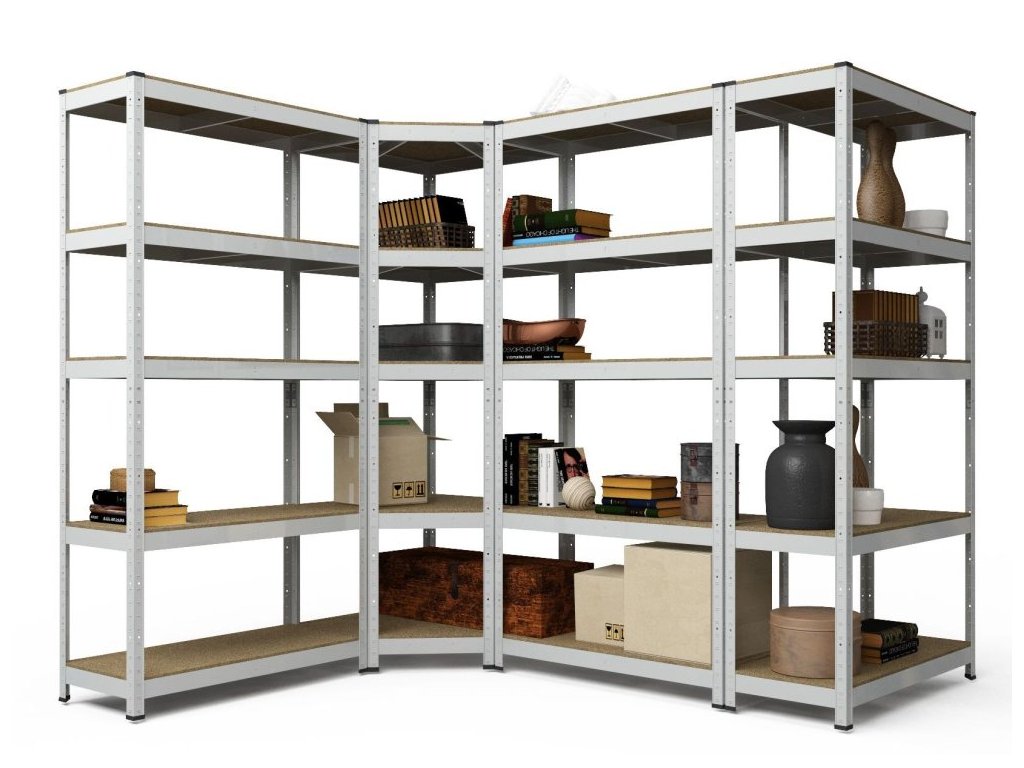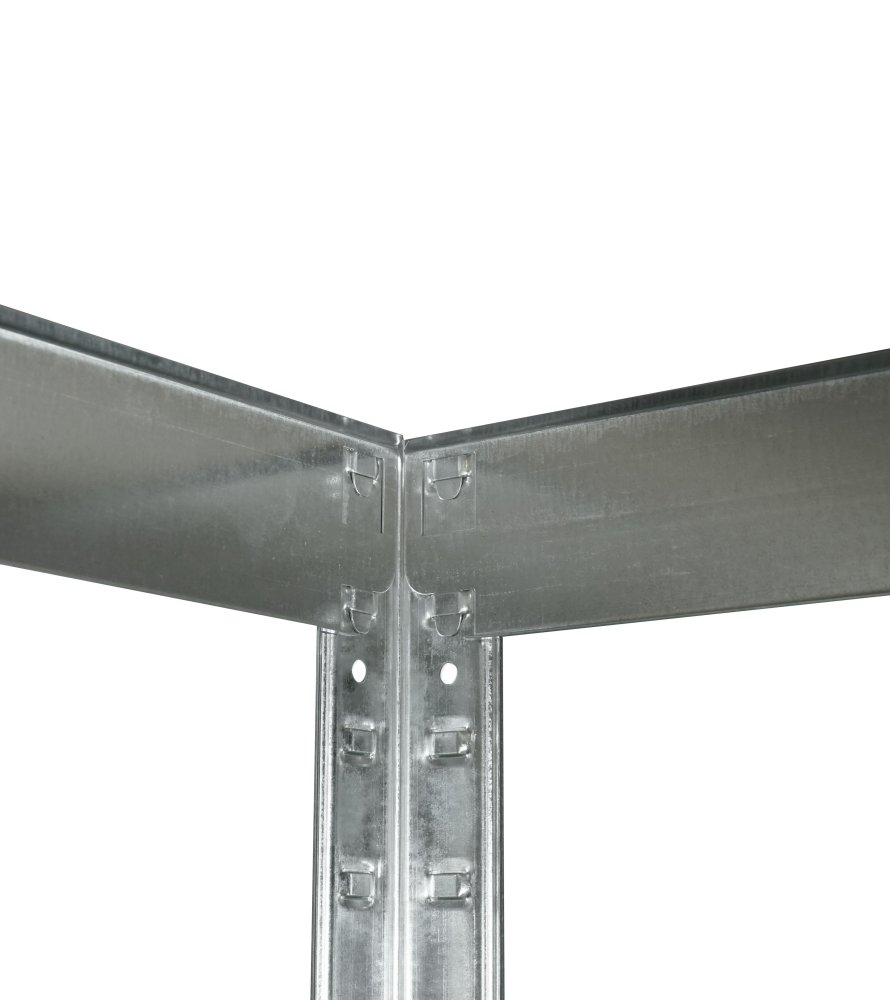 Rohový pozinkovaný regál 180x70x40x43cm, je ideální pro každou komoru, garáž či spižírnu. Skládá se z pěti polic, jejichž pevnost zvyšují střední podpěry. Zaoblené hrany kovové konstrukce zabraňují poranění při používání regálu.