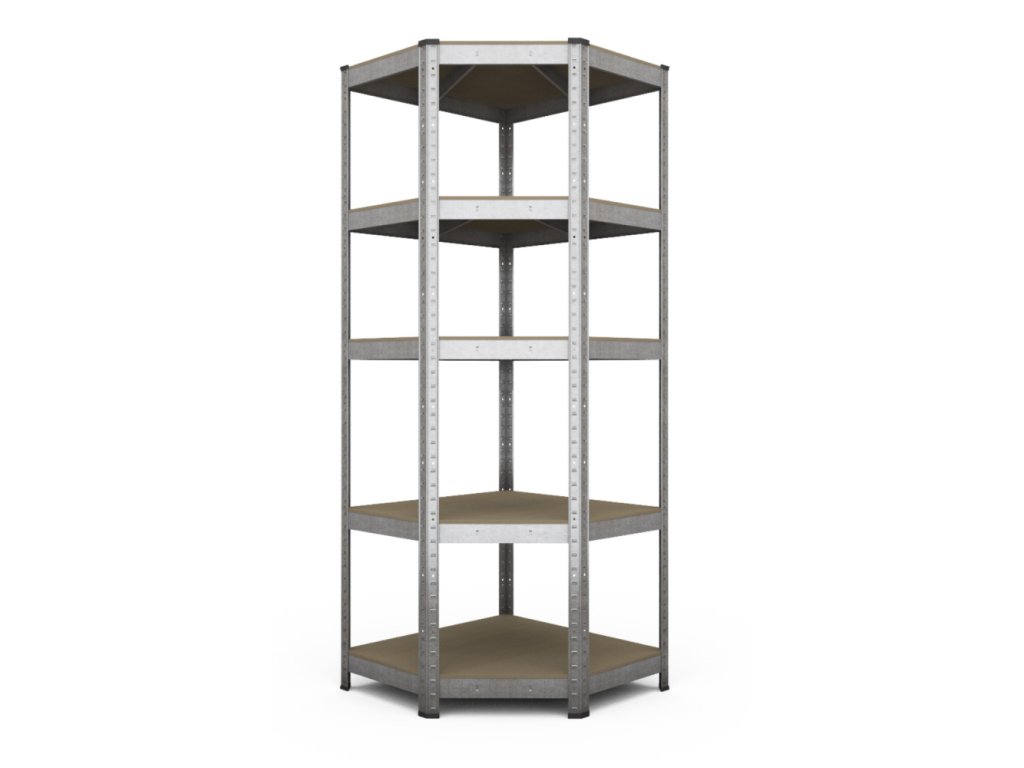 Rohový pozinkovaný regál 200x70x40x43cm, je ideální pro každou komoru, garáž či spižírnu. Skládá se z pěti polic, jejichž pevnost zvyšují střední podpěry. Zaoblené hrany kovové konstrukce zabraňují poranění při používání regálu.